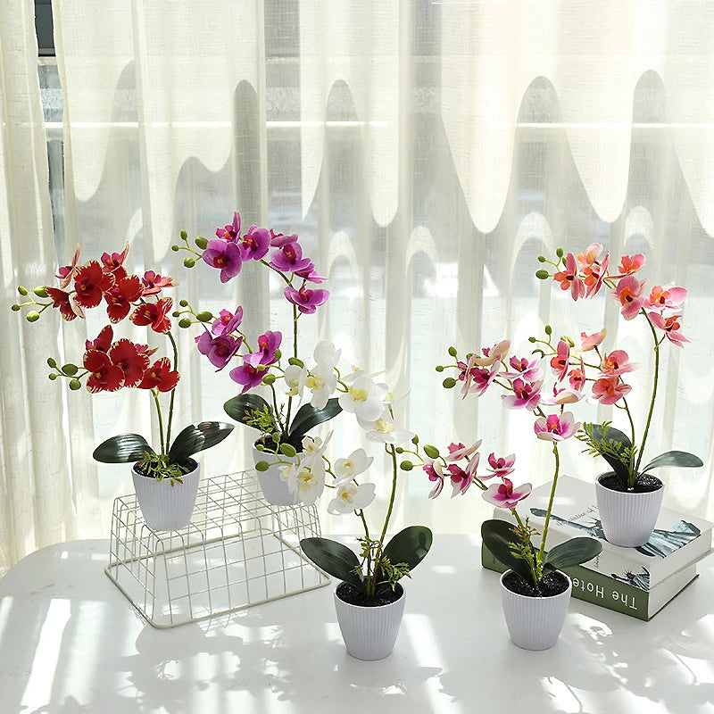 Creative 11 Heads Phalaenopsis Bonsai Simulation Flower Fake Flower Pot Garden dining table Indoor Outdoor Decoration