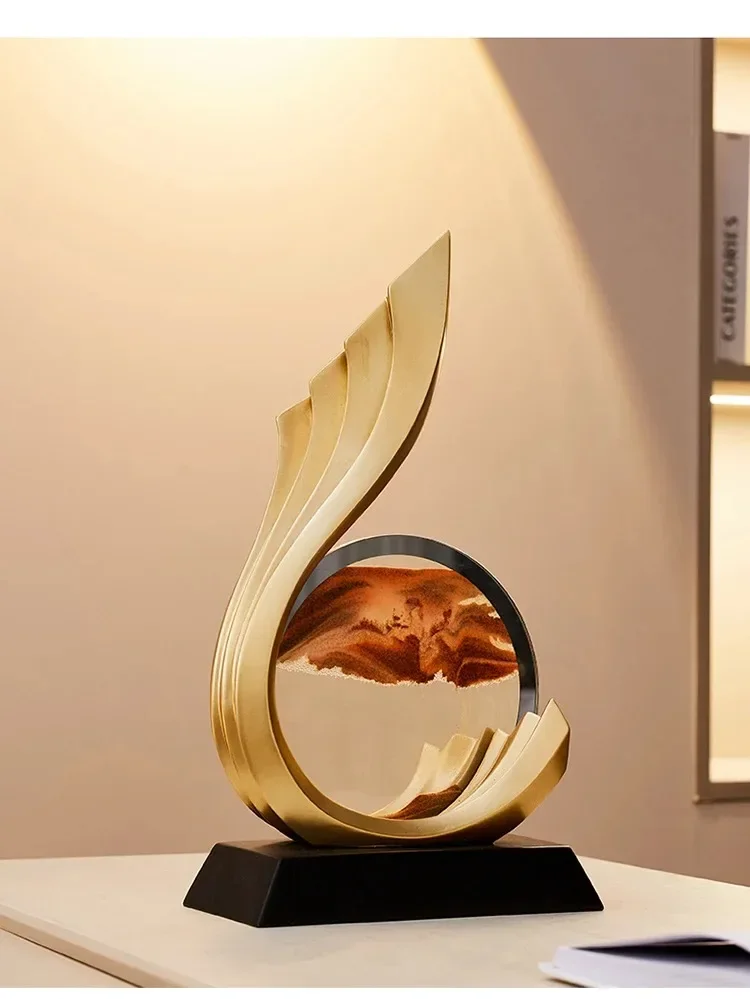 Lighting Luxury Living Room Hotel Entrance Accessories Home Decoration Creative Wave Sculpture Flowing Sand Art Image Decoration